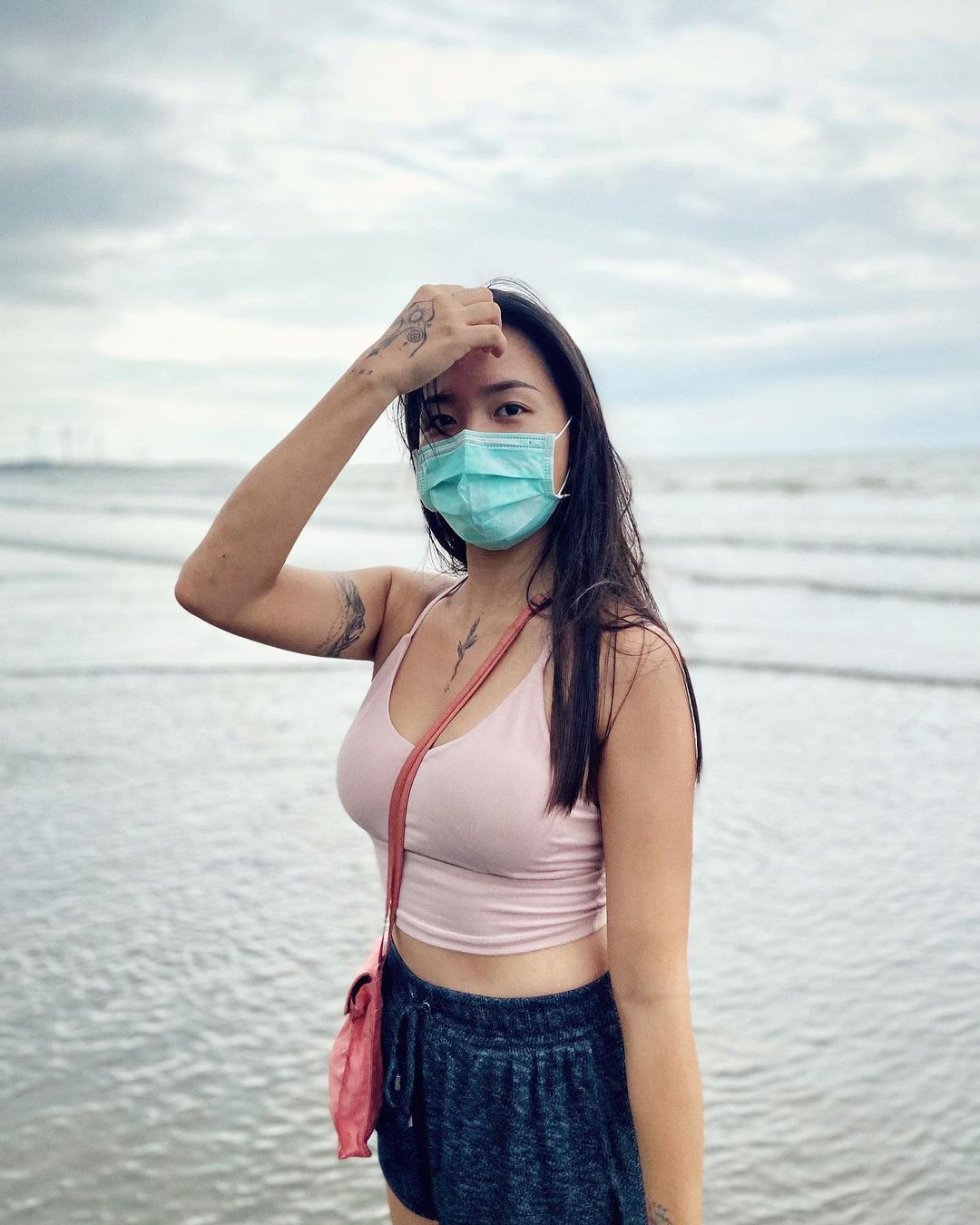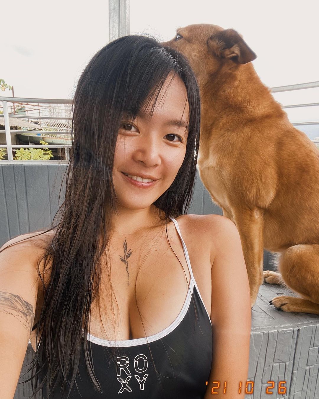 郭霏不愧是喜歡戶外活動的女孩兒,據說是畢業於中興獸醫,今年才正式邁入工作,平時非常喜歡到處玩耍,有著一身健康耀眼的小麥色肌膚,還有穿比基尼曝曬後的曬痕以及很有個人特色的刺青,整個人性感熱辣又健康美麗!