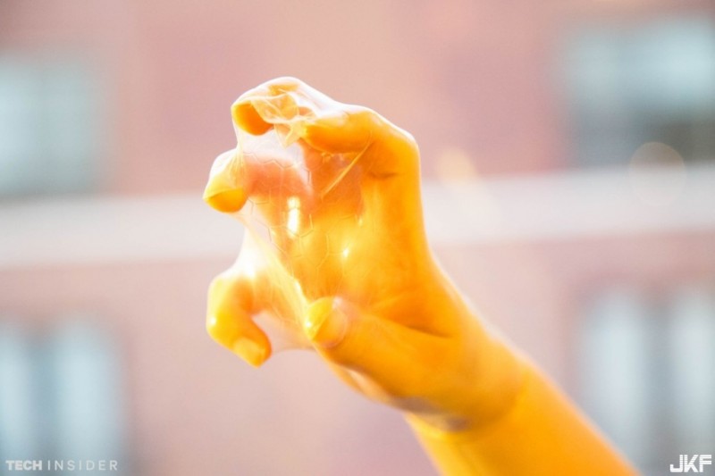 ▼來實際測驗一下,這款保險套究竟有多威?就算套進手掌,再用力撐開也還是不破。