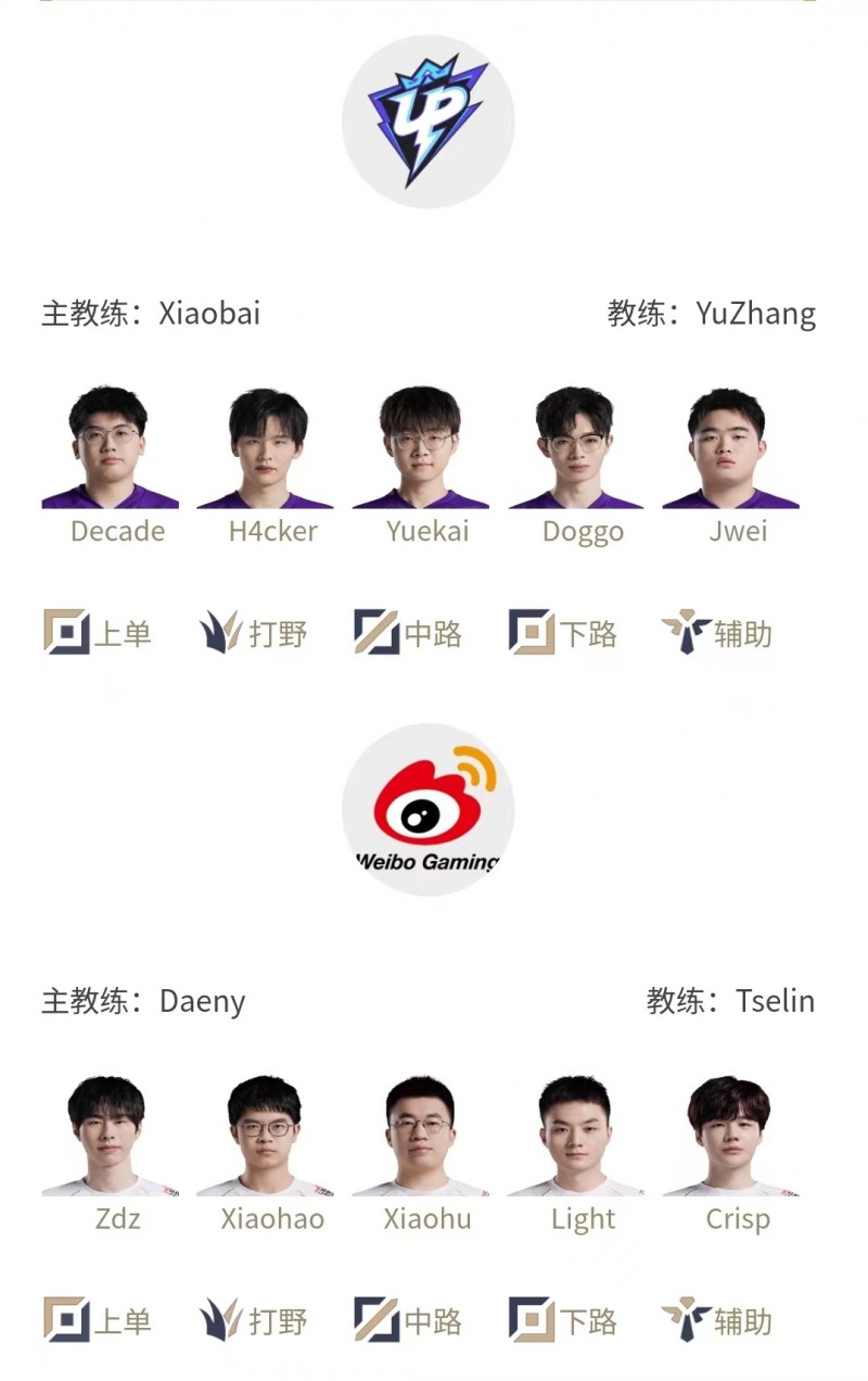 蜗牛电竞2月20日讯 LPL明日将有两场比赛,分别是UP对阵WBG,以及RNG对阵TES,首场比赛Yuekai将迎战自己的前辈Xiaohu,次局比赛面对JackeyLove,RNG决定换下Lwx,换上LP。