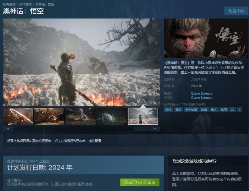 蜗牛电竞08月20日讯 由国内厂商-游戏动力 开发的魂类大作《黑神话:悟空》Steam页面已经上线,游戏完全支持简体中文与英文两种语言,除此之外还支持9种语言的界面与字幕文本,将于2024年发售。