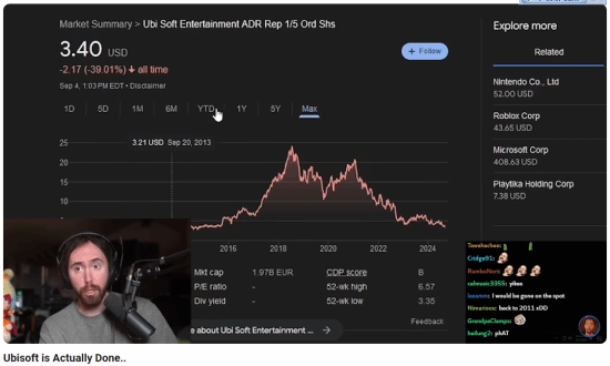 蜗牛电竞9月5日讯 此前报道,育碧股价暴跌后达到2014年底以来的最低水平,自2024年以来育碧股价已暴跌约34%。有分析师将其原因归咎于《星球大战:亡命之徒》发售后的表现。