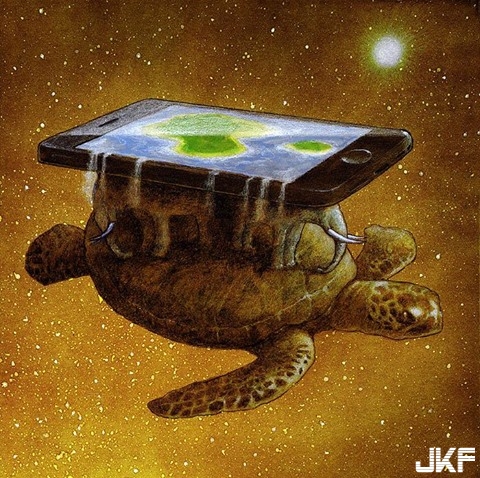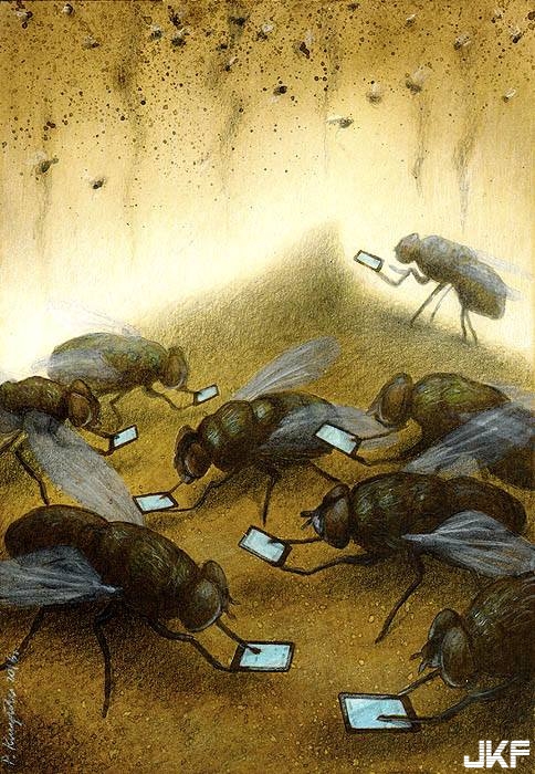 ▼諷刺人類要是沒有透過手機便什麼也看不見了。