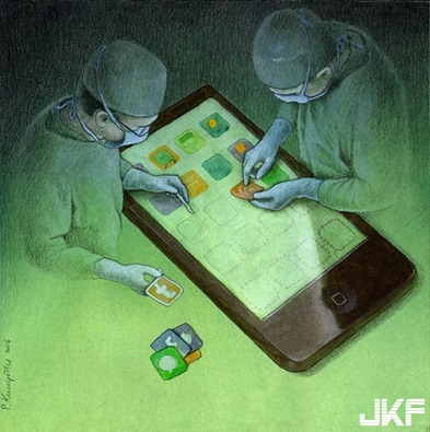 除了《Pokémon Go》現象之外,Pawel Kuczynski 還以人類對於智慧型手機過度依賴的議題著手創作,諷刺人類似乎沒有手機便活不下去的窘境。